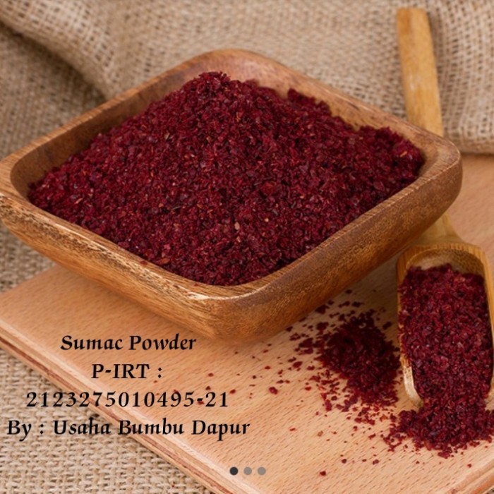 Sumac sebagai penambah cita rasa masakan.Sumac ini memiliki rasa tajam yang menyenangkan dengan aroma jeruk lemon yang di impor langsung.