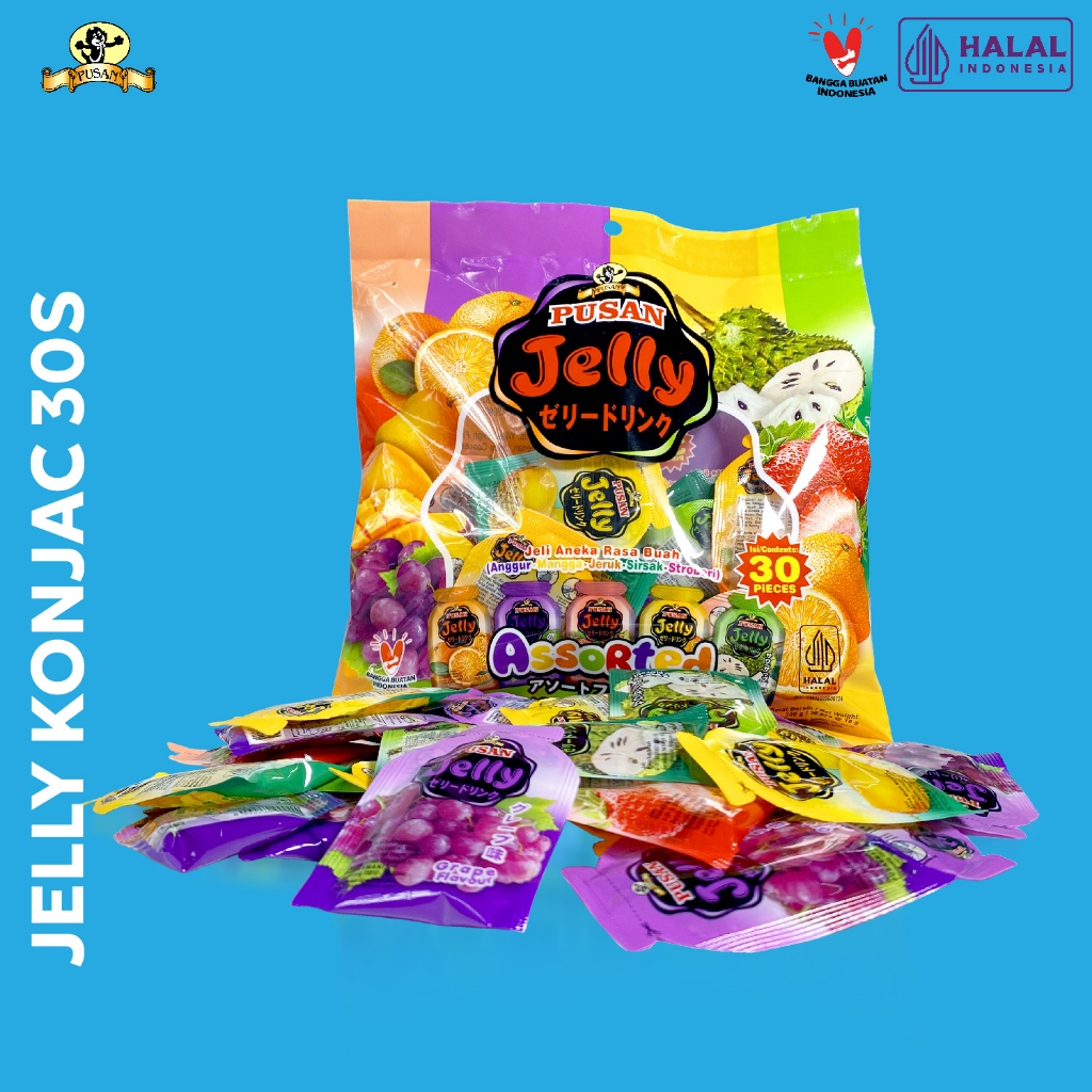 Pusan Jelly Konjac Assorted adalah konjac jelly dengan aneka rasa buah yang terdiri dari rasa Anggur, Mangga, Jeruk, Sirsak, Stroberi. Cocok untuk dijadikan cemilan atau tambahan topping untuk minuman. Bisa dinikmati kapanpun bersama keluarga atau teman.
