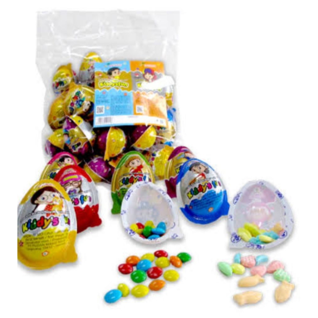 Pusan Kiddsyafun permen yang di kemas bentuk telur dengan rasa cokelat compound hitam manis aneka warna dan permen rasa aneka buah.. di jual per 1 bungkus isi 20 pcs.... yuk di order