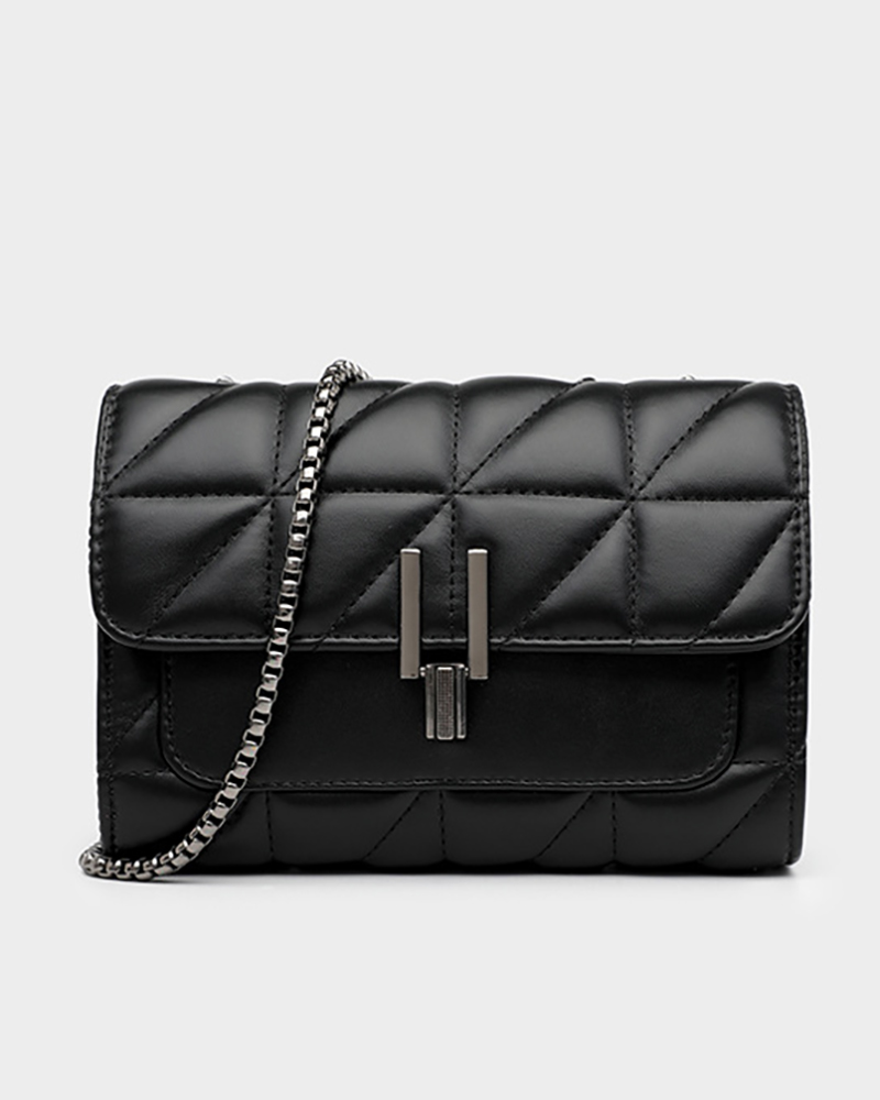 Push Lock Quilted Chain Bag, Black