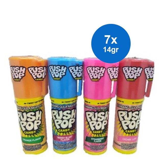 Push Pop Candy 14gr merupakan permen yang memberikan sensasi manis dan segar pada mulut serta dikemas dalam kemasan yang unik. Push Pop Candy sangat cocok dinikmati bersama dengan teman dan keluarga Anda. Disclaimer: