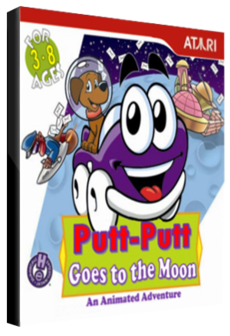 Due to a freak accident at the Fireworks Factory, Putt-Putt is blasted to the moon. There he meets Rover, a lovely little lunar terrain vehicle left behind by the astronauts. Putt-Putt and Rover must work together to rebuild a rocket, and accomplish a few good deeds for the Moon People before they meet the Man in the Moon and are homeward bound. Putt-Putt Goes to the Moon teaches the benefit of cooperation and the lasting value of friendship. Putt-Putt Goes to the Moon is an adventure game designed especially for children. Bursting with state-of-the-art animation, dazzling sound, hundreds of Click Points, and fully talking characters to thrill you and your child, Putt-Putt's world unfolds around your child's actions - enhancing problem-solving skills and teaching valuable lessons along the way. Putt-Putt Goes to the Moon is like no other game for children or adults!
