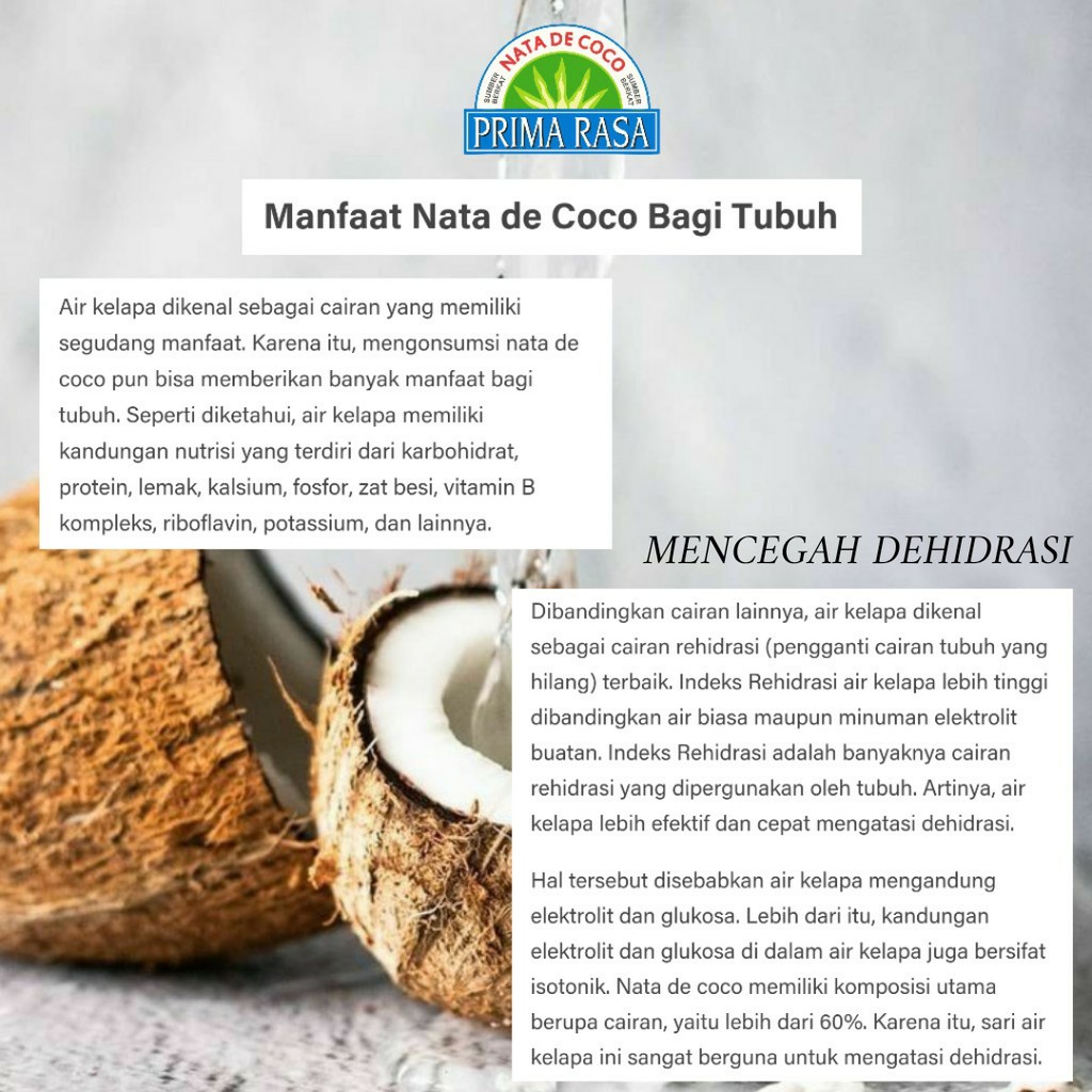 Fruit Cocktail Prima Rasa terdiri dari buah-buahan tropis dan nata de coco yang segar, sehat, kaya serat dan kaya vitamin. Cocok untuk dikonsumsi sebagai hidangan pencuci mulut, tajil setelah berpuasa dan snack sehat sehari-hari.