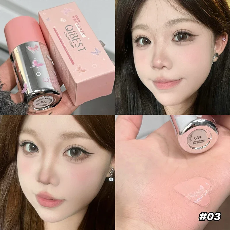 QIBEST Soft Color Sponge Head Liquid Blusher Smooth Cheek Eye Mousse Blush Highlighter Stick Rouge Waterproof Contour Cosmetics