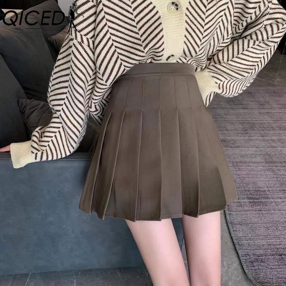 QICED Женская Мода Повседневная Однотонная Юбка с Принтом Летняя Весенняя XXXL кофейный