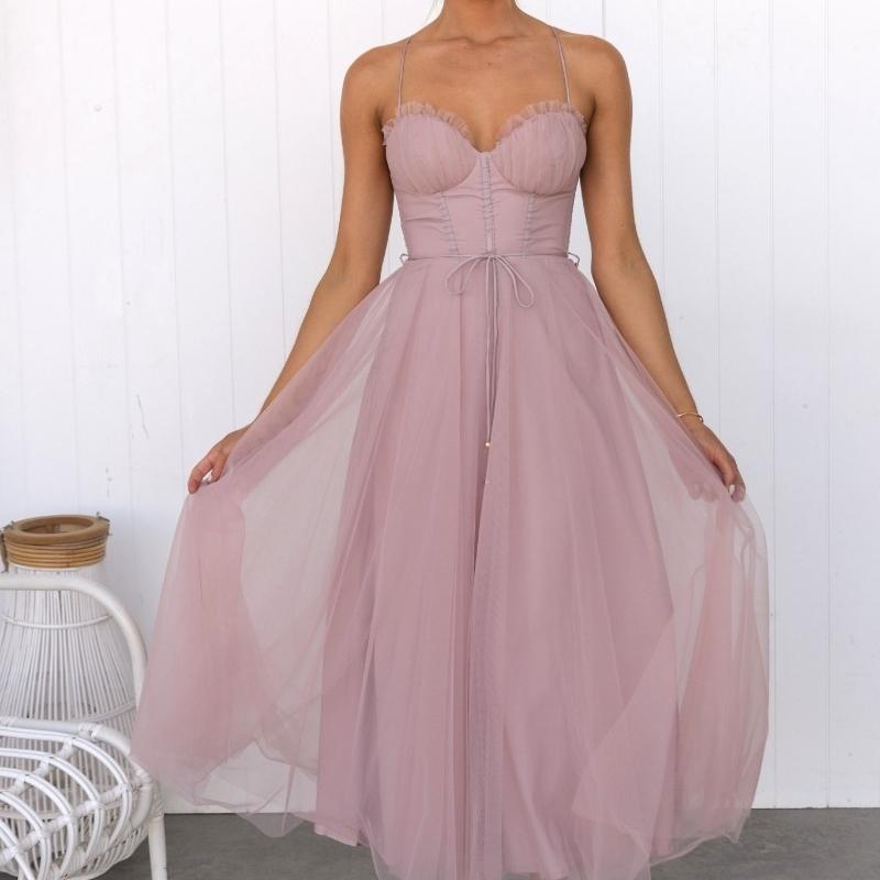 QICED Темперамент Сексуальное Слинг Сетчатое Вечернее Платье M розовый
