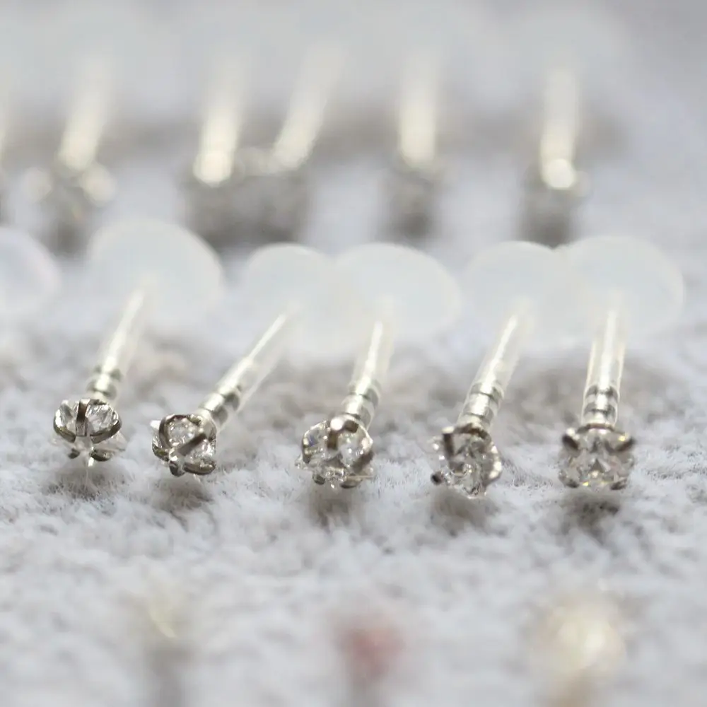 Quality Prong Setting Stainless Steel Square CZ Diamond Nose Pin