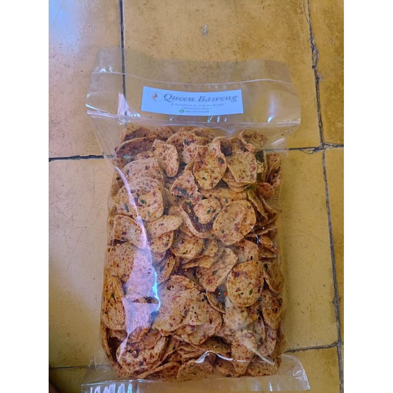 Cemilan kriuk dari baso ikan yg di goreng kering seperti keripik yg di balut bumbu chili oil dan di taburi daun jeruk menambah kenikmatan sensasi pedas dan wangi khas daun jeruk bisa jadi teman nasi hangat lohh