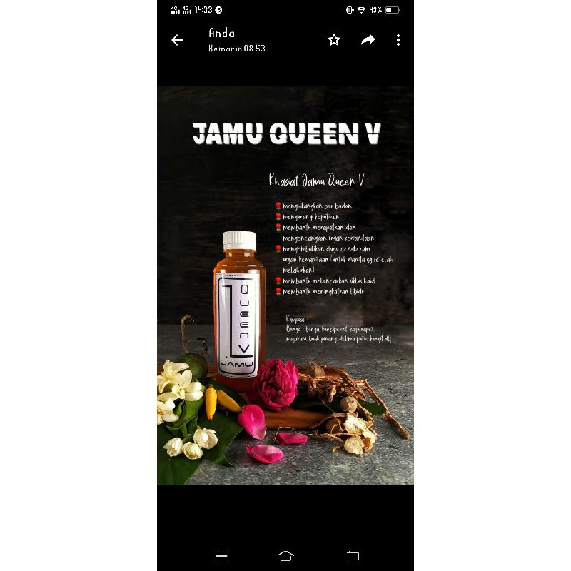 minuman dr rempah asli dan bunga bungauntuk mengatasi semua masalah organ kewanitaan minuman ini terbuat dr, sirih,bunga, pinang muda,kayu rapet kunyit,kulit delima dan majakani