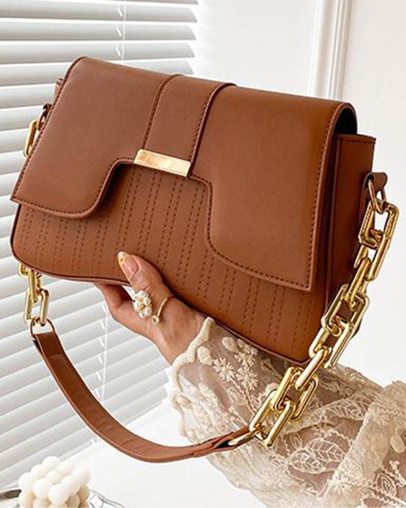 Quilted Asymmetrical Chain Strap Shoulder Bag, Brown