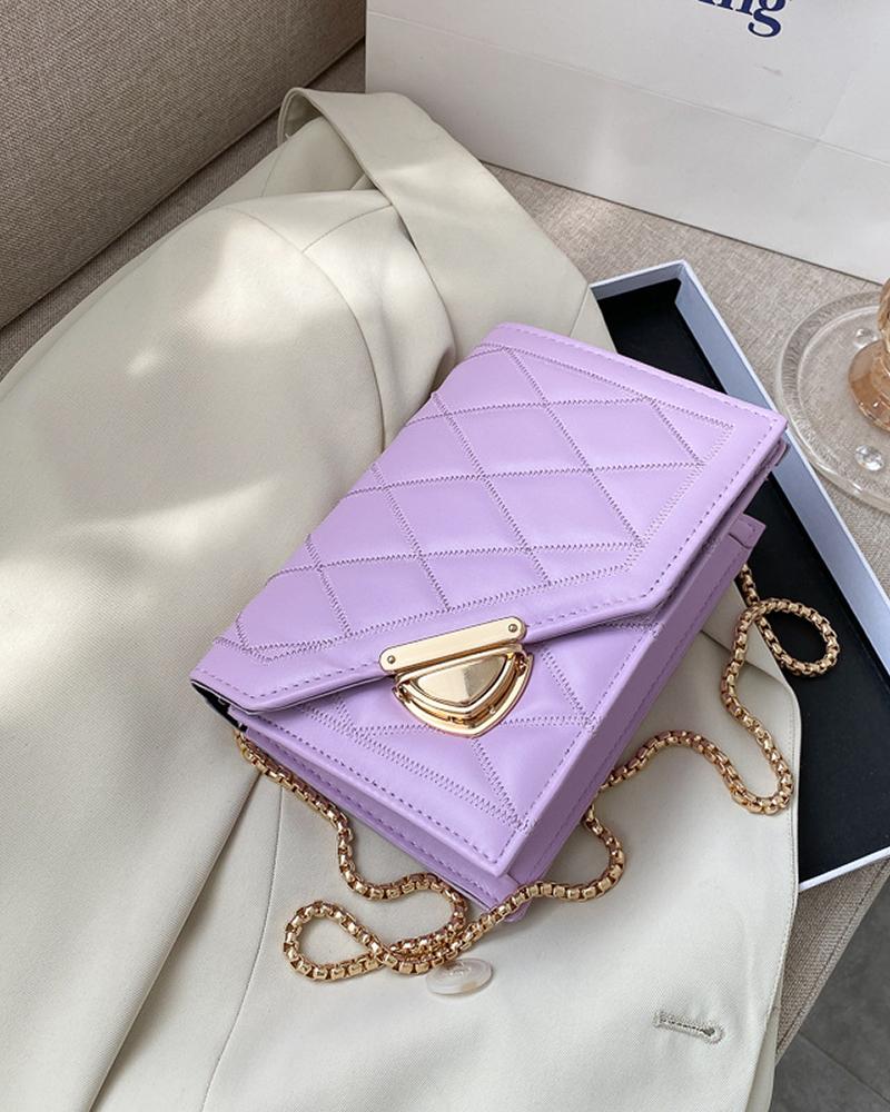Quilted Chain Strap Flap Crossbody Bag, Purple