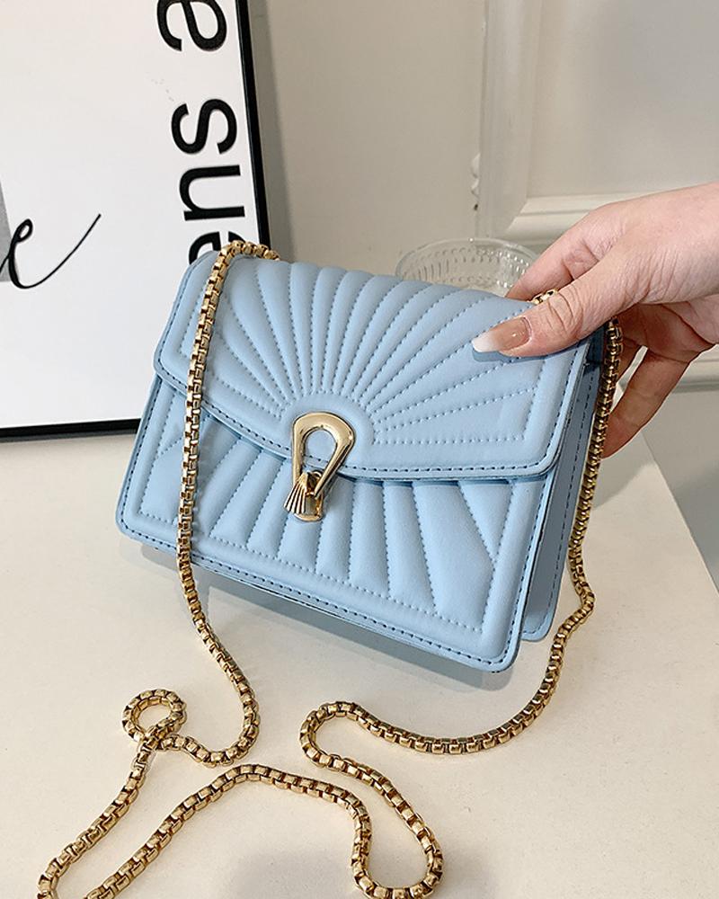 Quilted Chain Strap Lock Flap Shoulder Bag, Blue