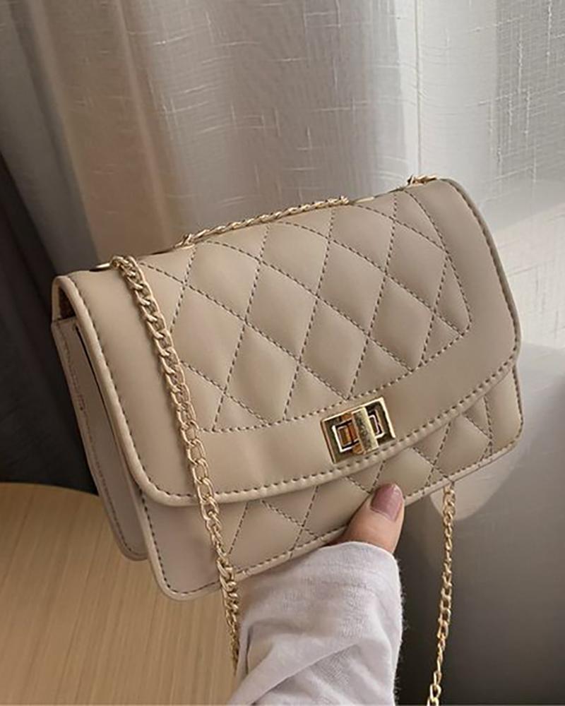 Quilted Embroidery Thread Twist Lock Bag, Khaki