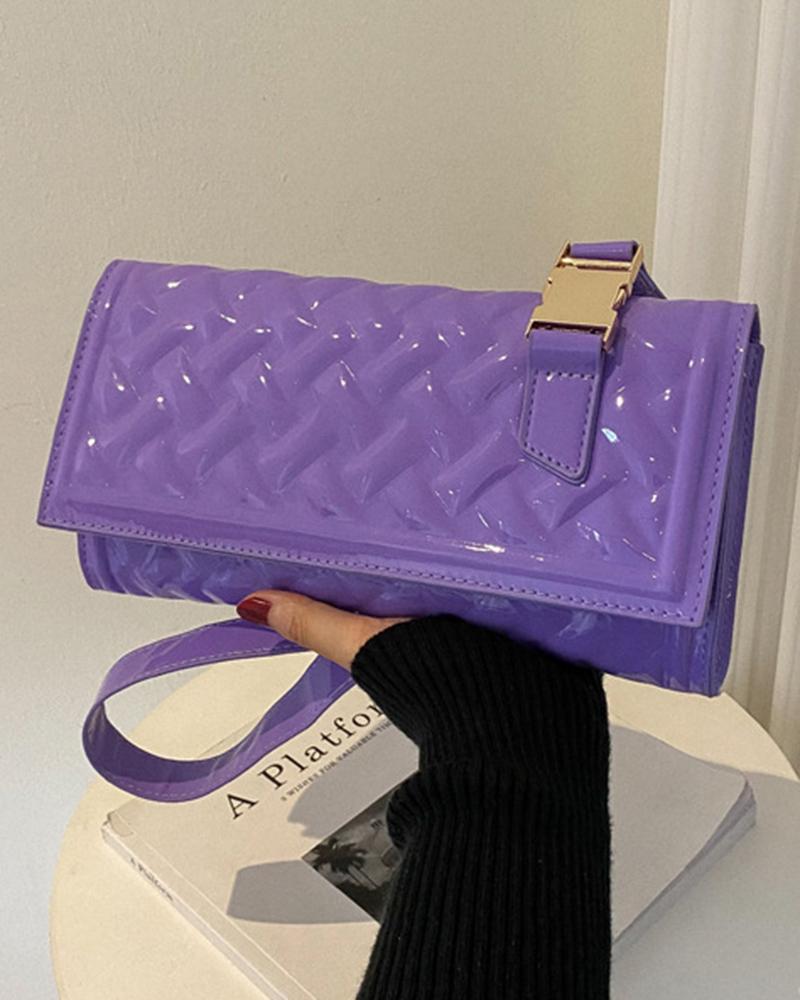 Quilted Flap Rectangular Shoulder Bag, Purple