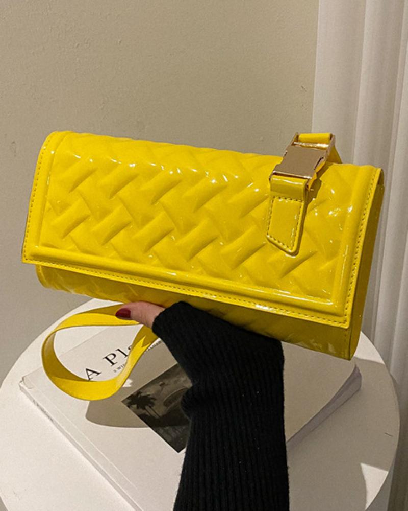 Quilted Flap Rectangular Shoulder Bag, Yellow