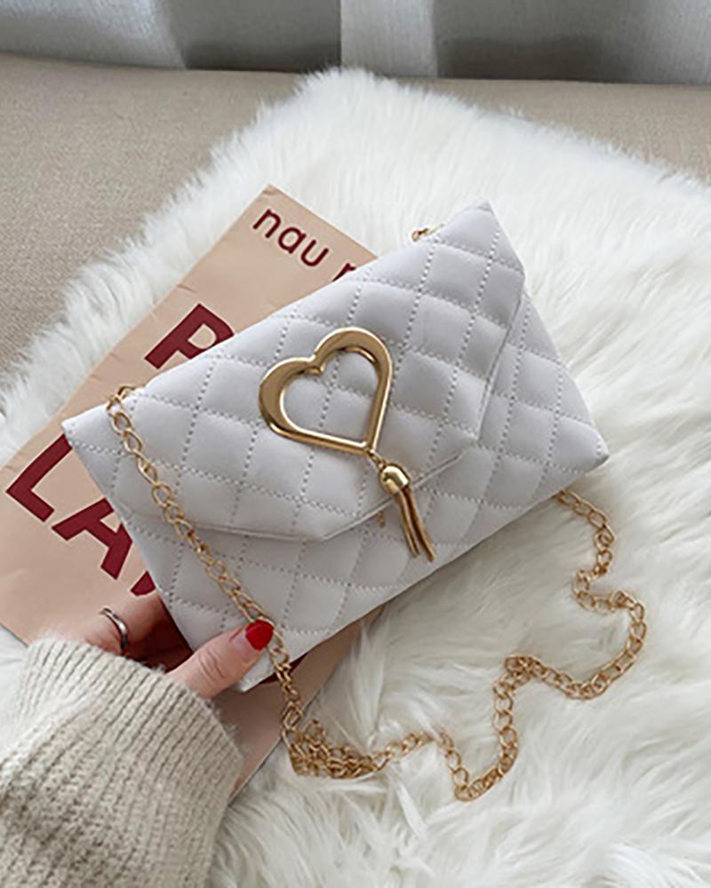Quilted Heart Pattern Tassel Chain Bag, White