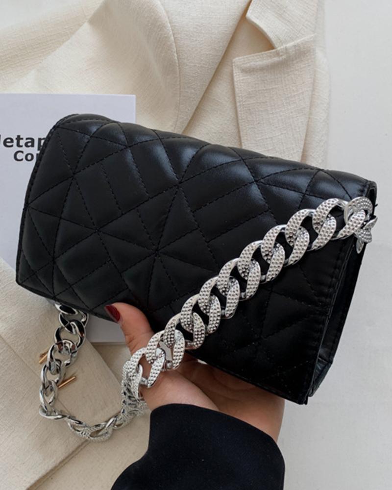 Quilted Rhinestone Chain Strap Shoulder Bag, Black