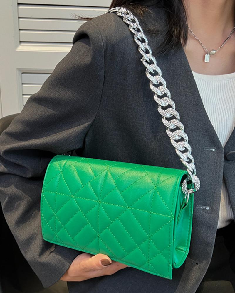 Quilted Rhinestone Chain Strap Shoulder Bag, Green