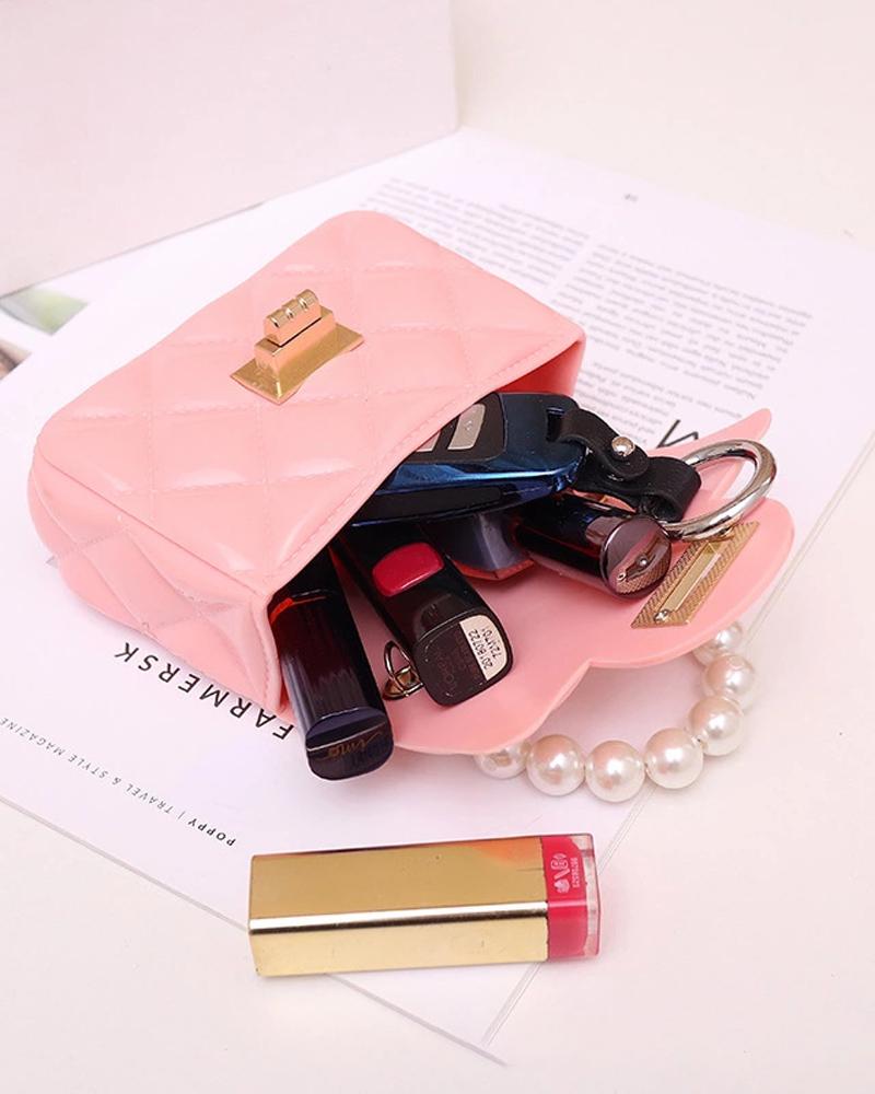 Quilted Twist Lock Beaded Handle Mini Satchel Bag, Pink