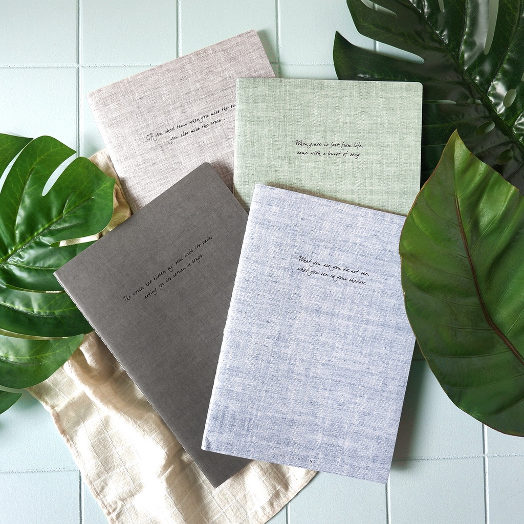 Koleksi buku tulis Quotes From A Poet menghadirkan desain sampul minimalis dengan warna natural agar kamu bisa menulis tanpa distraksi, tiap varian disertai sepotong puisi sebagai inspirasi. Halaman bergaris di dalamnya dijilid dengan jilid jahitan benang yang menjaga lembaran kertas dan juga memberi kebebasan untuk menulis dengan lapang. Buku ini hadir dalam ukuran B5.