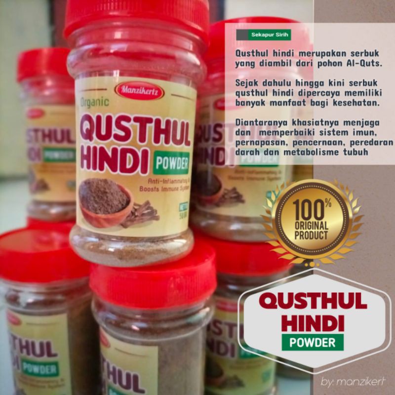 "Qusthul hindi merupakan serbuk dari pohon Al-Quds (costus) yang berhabitat asli di India. Serbuk ini memiliki banyak khasiat dalam menjaga stabilitas dan imunitas tubuh biidznillah"