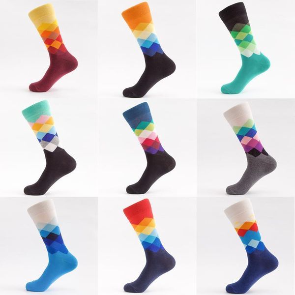 2021 new creative harajuku cotton medium socks men funny diamond painting happy women socks casual sox1, Black