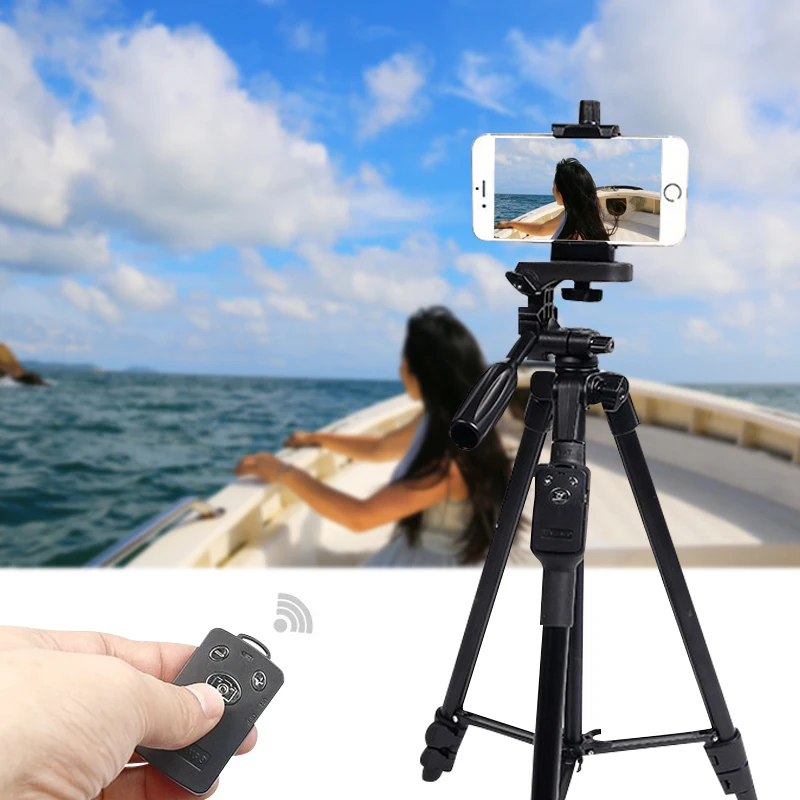 Selfie Video YUNTENG VCT 5208 RM Aluminum Tripod with 3-Way Head & Bluetooth Remote for Camera Phone Holder Clip