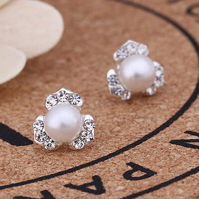 Hot Fashion Simulated Pearls Crystal Tiny Heart Leaf Star Triangle Flower Bowknot Cherry Stud Earrings For Women Cheap Jewelry