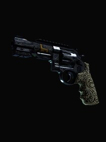 The R8 Revolver delivers a highly accurate and powerful round at the expense of a lengthy trigger-pull. Firing rapidly by fanning the hammer may be the best option when point-blank stopping power is required. Its ivory handle is paired with ornate, engraved flourishes on blue metalwork. Pull the lever