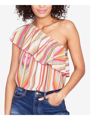 RACHEL ROY Женский зеленый топ в полоску с рюшами и асимметричным вырезом