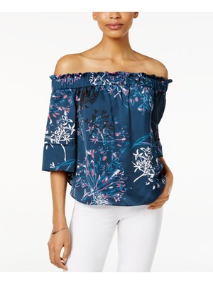 RACHEL RACHEL ROY Женский синий топ с открытыми плечами и короткими рукавами с принтом