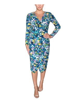 RACHEL RACHEL ROY Женское синее платье миди с длинными рукавами и тюльпаном с искусственным запахом, Синий