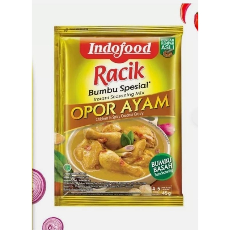 Sajikan opor rumahan yang gurih dan nikmat dengan Bumbu Indofood Opor. Aroma kuahnya harum penuh selera, rasanya pun lezat. Cepat dan praktis! Keunggulan :