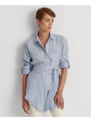 RALPH LAUREN Женский темно-синий полосатый топ с отворотами и воротником на пуговицах, Navy
