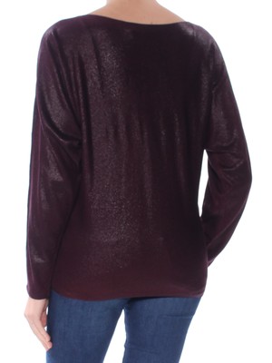RALPH LAUREN Женский топ-туника металлик с длинными рукавами и вырезом под горло, Burgundy