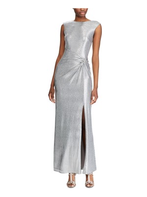 RALPH LAUREN Женское серебряное вечернее платье-футляр без рукавов с украшением в виде выреза, Серебряный