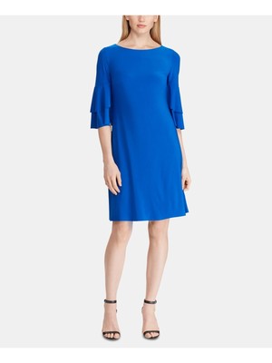 RALPH LAUREN Женское синее вечернее платье выше колена с рюшами на рукавах Размер, Синий