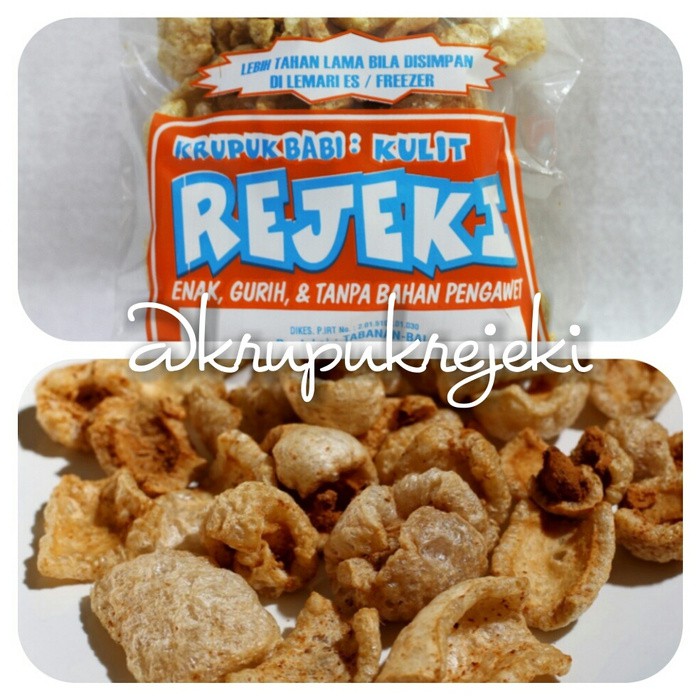 Krupuk Rejeki Kulit 75grKrupuk kulit Babi yg dibuat dengan bumbu khas BaliTanpa pengawet, tanpa msg dan renyah gurih tidak keras saat digigitBarang selalu baru dan fresh langsung dari pabrik :)IG: krupukrejeki