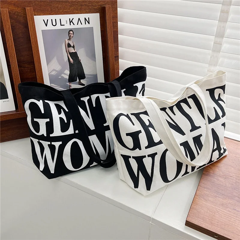 Women Canvas Shoulder Bag Large Capacity Embroidery Crossbody Messenger Bag Simple Cloth Purse Fashion Handbag Tote For Girls