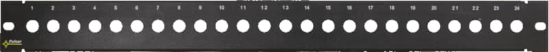 RAMKA PATCH PANEL KROSOWNICA 24 PORTY Pulsar RAP-FRamka (patch panel) przeznaczona jest do montażu do 24 złączy typu „F” w szafach RACK w standardzie 19”.Element ten wyposażony w złącza stanowi zakończenie okablowania strukturalnego dla kabli systemów RTVSAT (kable koncentryczne75 Ohm).Takie moduły stosowane są w instalacjach o których mowa w Rozporządzeniu Ministra Transportu, Budownictwa i Gospodarki Morskiejz dnia 22.11.2012 §192f, pkt. 1 pp2 dotyczących przygotowania okablowania w budynkach wielorodzinnych (AIZ – Antenowe InstalacjeZbiorcze).Oprócz modułów przeznaczonych do krosowania przewodów koncentrycznych, stosowane są również moduły do krosowania przewodówtypu skrętka komputerowa i przewodów światłowodowych.Wszystkie te moduły popularnie nazywane są krosownicami.Krosownica w celu uporządkowania przewodów posiada numerowane pola modułów.Model: RAP-F
