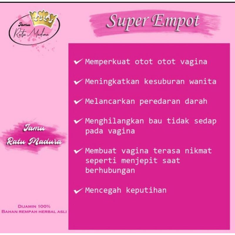 jamu ramuan ratu madura khusus kaum hawa untuk menjaga kesehatan dan kebersihan area wanita dan juga keharmonisan harga 1 paket super rapet dan super empot2
