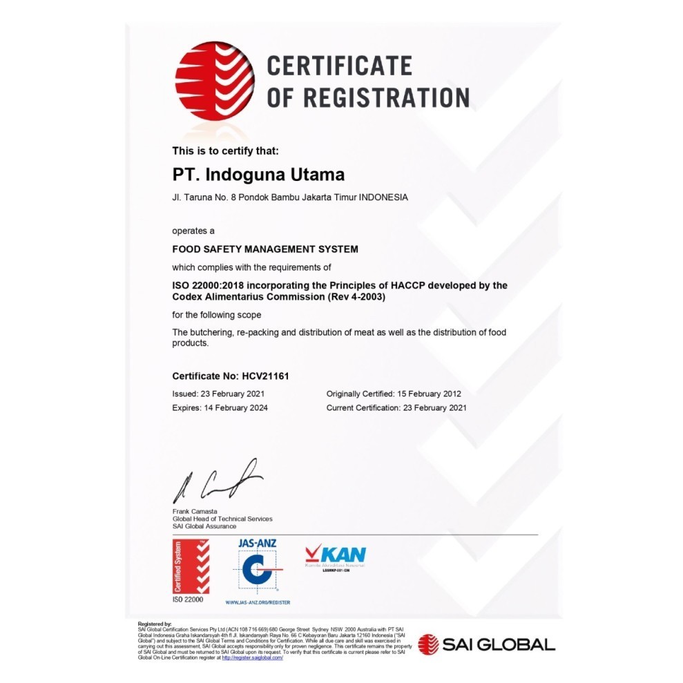 Produk yang diberikan adalah produk yang kami potong sendiri yang terjamin Halal dan Higienis, kami sudah tersertifikasi ISO.