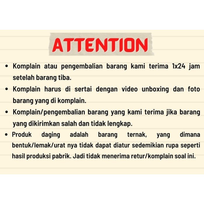 - Barang dapat ditukar apabila barang tidak sesuai dengan judul produk yang dipilih. Keluhan hanya dilayani maksimal 1x24 jam sejak barang diterima dengan menyertakan video pada saat sedang membuka paket yang masih tersegel dengan invoice yang dikirimimkan