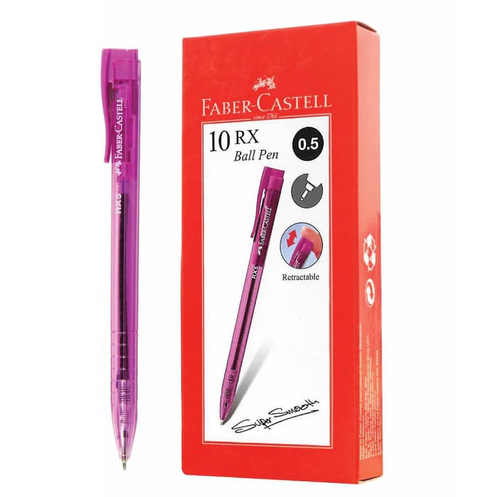 READY PULPEN FABER-CASTELL RX 0.5MM TINTA HITAM, BARREL MAGENTA-1 BOX 10 PCS