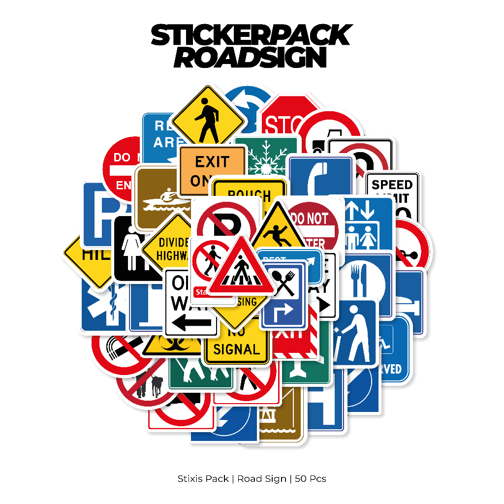 [READY] STICKER PACK | ROAD SIGN | 50 PCS | KISSCUT | WATERPROFF | STIXIS.MARKET