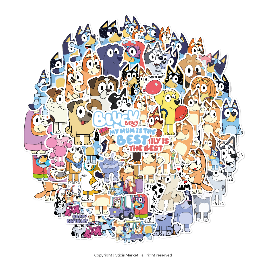 [READY] STICKER PACK | THE BLUEY CARTOON | 60 PCS | KISSCUT | WATERPROFF | STIXIS.MARKET