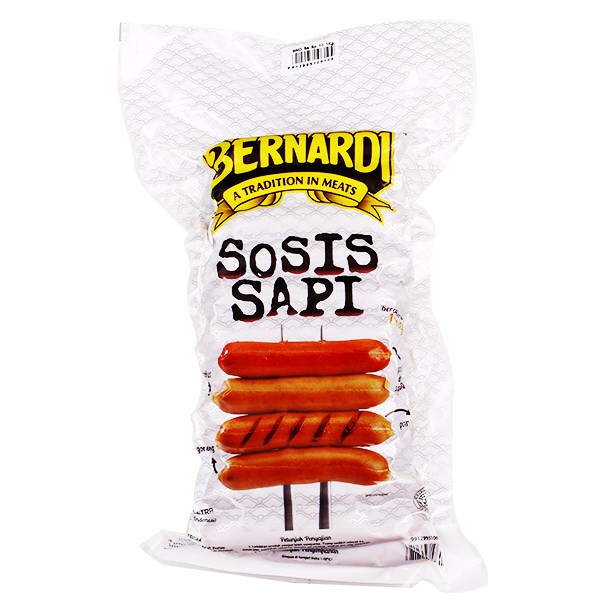 Hari sabtu , Minggu , dan Hari besar / Tanggal Merah Toko hanya menerima pesanan dan akan di kirimkan pada hari operasional.] Produk olahan daging sapi cincang dengan ditambahkan rempah-rempah dan bumbu pilihan. Produk dicetak panjang dengan casing ( selongsong) cellulose dan dimasak dengan cara pengasapan. Casing cellulose adalah casing food grade yang dapat dikonsumsi langsung tanpa dikupas. Lelehkan sosis sampai leleh sempurna, dan siap untuk diolah. Dapat disajikan seperti hotdog yaitu sosis yang diapit dengan roti (bun) ditambah dengan sayuran atau bahan lain. Campuran berbagai macam masakan. Sebagai topping.