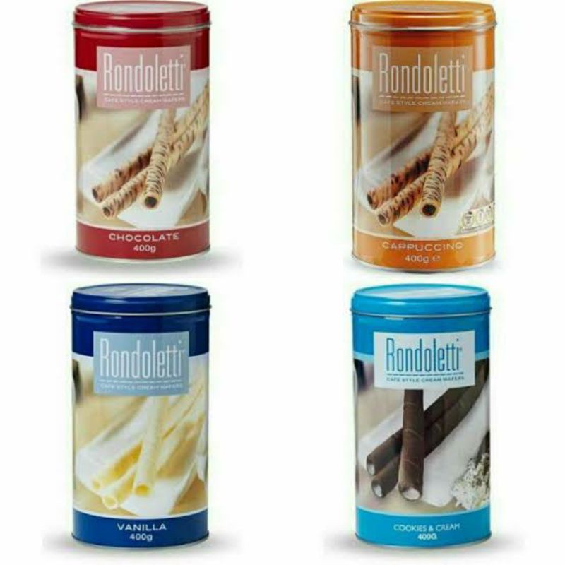 Rondoletti, luxury wafer crispy roll. Wafer roll ala cafe dengan citarasa istimewa kualitas ekspor. Terbuat dari bahan pilihan dengan proses standar pengolahan pangan Eropa. Kemasan kaleng, menjamin kualitas terjaga dan higienis. Bersertifikat Halal LPPOM MUI.