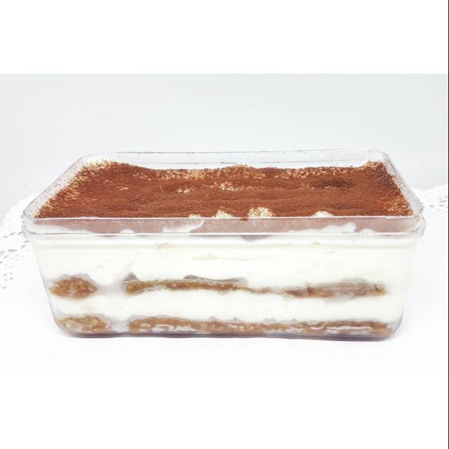 Perpaduan gurihnya keju mascarpone, renyahnya biskuit lady finger, mantapnya rasa kopi, yang dilengkapi bubuk cacao diatasnya. Kalau mau request tambahan parutan Callebaut Chocolate juga bisa.