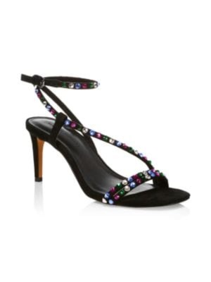 REBECCA MINKOFF Женские кожаные босоножки на каблуке на шпильке с черным драгоценным камнем, размер 8 м, Черный, RB-NANINE